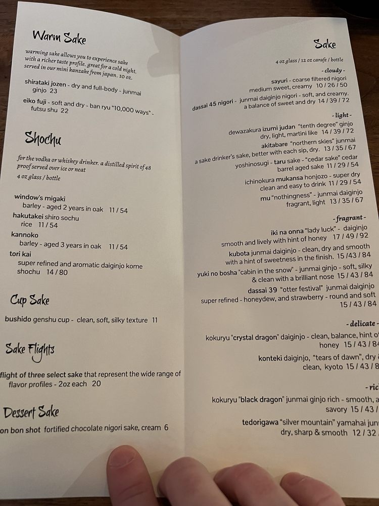 Aged ginjo koshu, bottled in 1996, complex and smooth, super limited, an amazing way to finish your meal cc